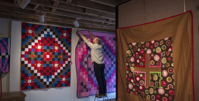 A few weeks ago I attended a traveling exhibition of quilts made by residents of the Beaumont Juvenile Correctional Center at The Bridge Progressive Arts Initiative. The more I talked to participants in the program and their instructor Roy Mitchell, the more I could see why these young men, separated from their friends and families, would be drawn to quilting. It's not just an antiquated craft popular among women of a certain age. No, the practice of making quilts offers the opportunity to renew social bonds. They're strengthening ancestral bonds with their grandmothers and great aunts who first exposed them to the craft and reconnecting with their families to whom they regularly send their creations. They have become so well-versed in the art and technique that they're even donating quilts to homeless shelters. It's no wonder then that they spend 9 hours a day working on their quilts. They're sewing themselves a connection to the world they've been separated from.